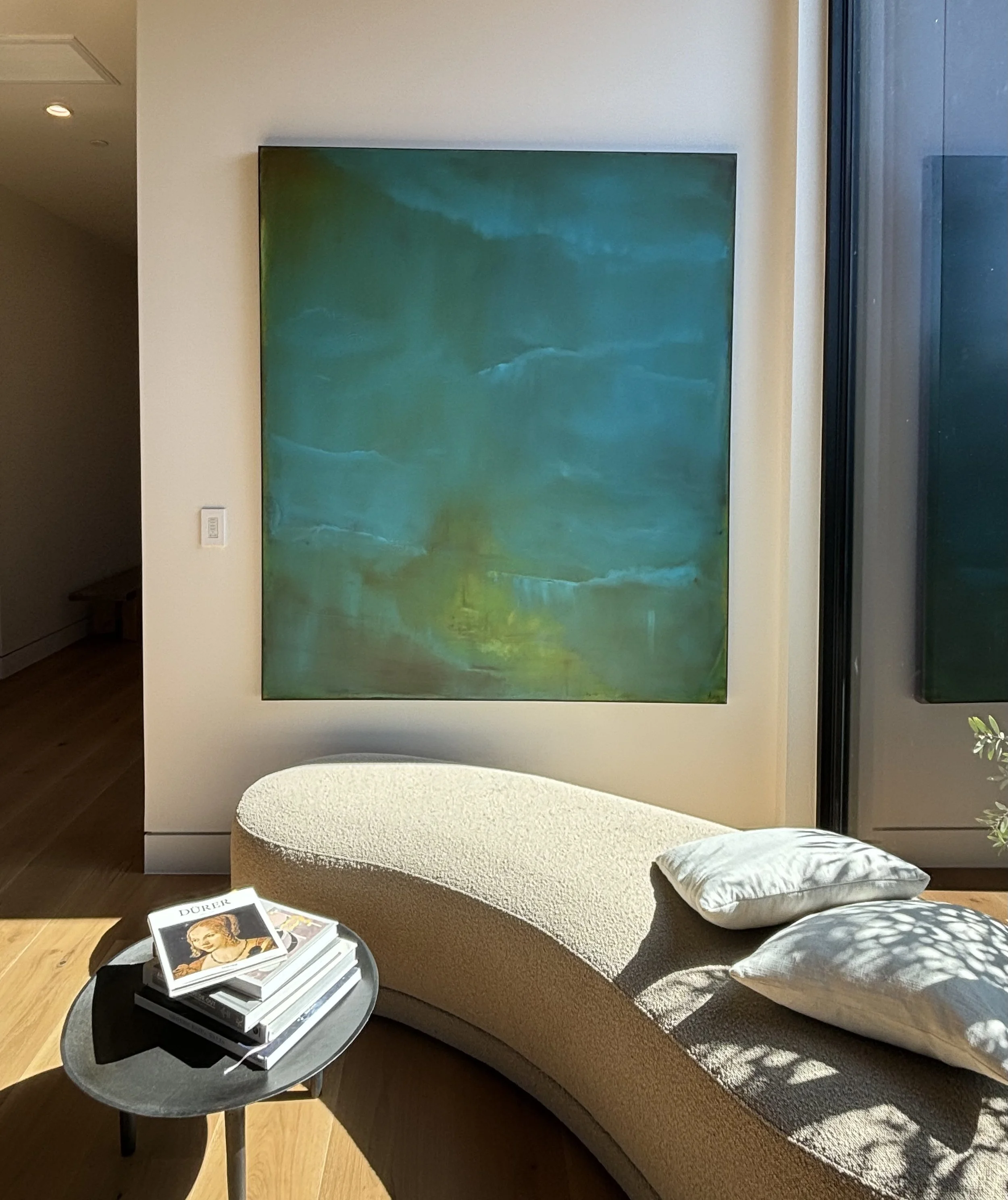 I try not to get in the way of my intention, I am open to what unfolds on the canvas. I trust my process and don’t question where it leads me. When I let go, it arrives, when I try to grasp it, it disappears. It’s like Zen, flow like water, reflect like a mirror and respond like an echo.